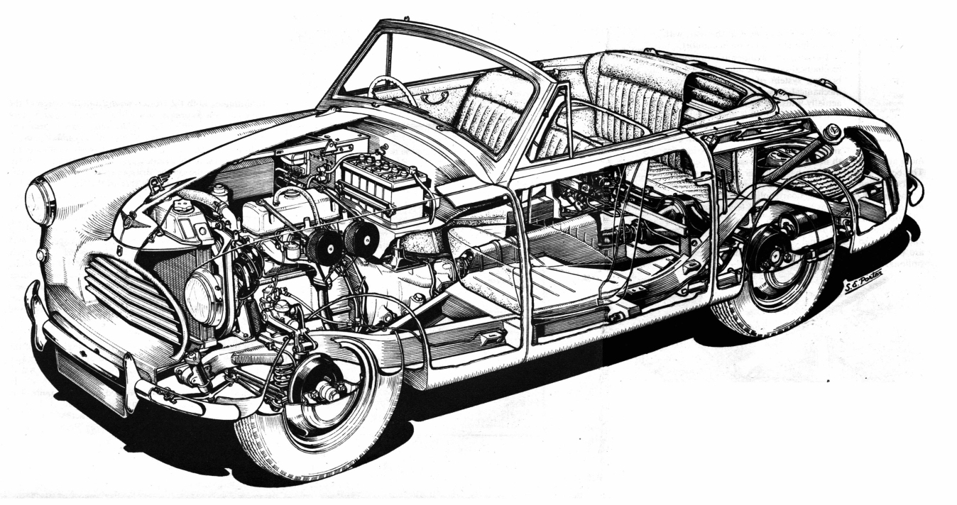 Austin A40 Sports: Two-door convertible body, full 4 (occasional 5) seater, due to the clever construction legroom in the back is actually quite good :)